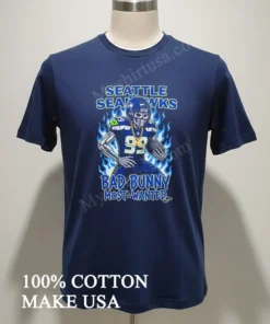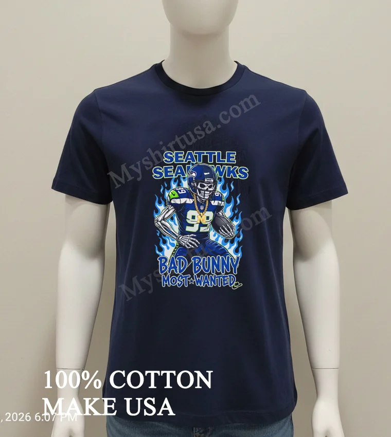 Ready to elevate your game day style or make a concert statement? Why settle for ordinary when you can own the extraordinary? Grab your Seattle Seahawks Football X Bad Bunny Most Wanted Design Shirt today! We promise premium quality: 100% American Cotton, soft, stretchy, breathable, all for just $23 USD. Enjoy speedy 3-5 day US delivery, embracing that perfect Vintage, Streetwear, American style. Don’t wait join the trend! Find it at Myshirtusa.
