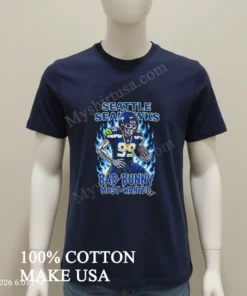What really sets this tee apart from those basic fan shirts you see everywhere? It’s the seamless, vibrant fusion of the gritty Seahawks spirit with Bad Bunny’s unmistakable ‘Most Wanted’ aesthetic a bold design that screams individuality, not just a logo, but a whole mood. Crafted from 100% American Cotton, it feels unbelievably soft against the skin, yet durable enough for everyday wear. I practically live in mine, pairing it with distressed jeans for a classic streetwear vibe or throwing it over some basketball shorts for a laid-back look. To keep it looking fresh, I always wash it inside out in cold water, tumble dry low, and avoid harsh bleaches. That way, the print stays crisp, and the fabric keeps its shape. This tee sparks conversations; you’ll find folks chatting about its unique blend on Reddit’s streetwear threads and TikTok fan groups, and it’s popping up all over Instagram, especially during game days or concert announcement feeds.