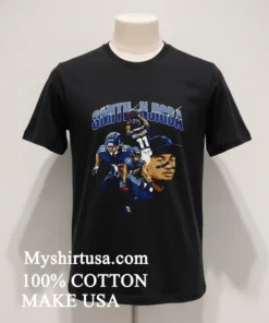 Let’s talk about the shirt itself, because this isn’t just any T-shirt. The design on this bad boy is a collage think bold graphics, action shots of Jaxon Smith Njigba, and classic Seahawks elements all expertly woven together. It’s dynamic, it’s eye-catching, and frankly, it tells a story without saying a word. Compared to those plain, single-logo tees you see everywhere, this one has personality. It’s made from 100% American Cotton, which means it’s not just soft, it’s got that durable, breathable feel you crave, especially when you’re out and about or just lounging at home. The fit is a fantastic blend of vintage and modern streetwear; it’s roomy enough to be comfortable but still looks sharp. I love styling it with some distressed jeans and classic sneakers for a laid-back weekend look, or even layering it under an open flannel shirt when the weather gets a bit crisp. And for care? Super easy: cold wash, inside out, and tumble dry low to keep that awesome graphic looking fresh for seasons to come. Don’t go blasting it with high heat, folks, you want this gem to last!