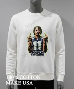 Why just watch the game when you can wear the passion? Ready to upgrade your game day style, or just looking for that perfect blend of comfort and cool? At Myshirtusa, we promise 100% American Cotton, soft, stretchy, breathable shirts featuring the Seattle Seahawks Jaxon Smith Njigba Number 11 Posing Middle Finger Graphic Shirt. Get yours for just $23 USD, delivered in 35 days across the US. Experience Vintage, Streetwear, American style today!