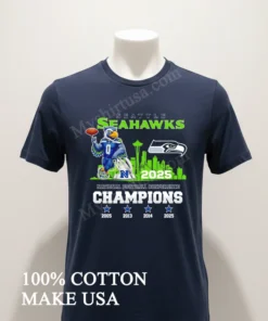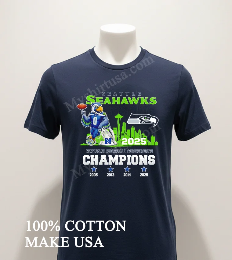 Why wait to celebrate? Grab your Seattle Seahawks National Football Conference Champions 2025 Blitz Mascot Shirt today and wear your pride! Isn’t it time your fan gear matched your passion? Crafted from 100% American Cotton, this soft, stretchy, and breathable tee is only $23 USD and arrives at your door in just 3-5 days in the US. Get that Vintage, Streetwear, American style now!