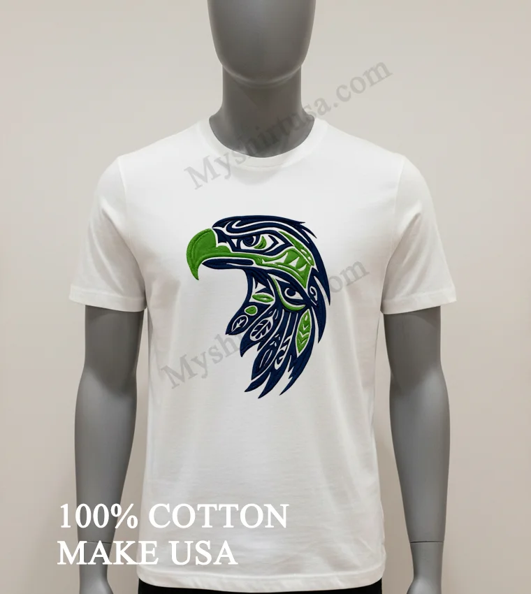 #SeahawksTribalTee #AmericanFashion #IndigenousDesign #StreetwearUSA #MySeahawksShirt