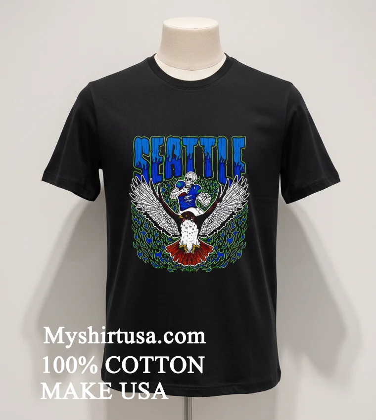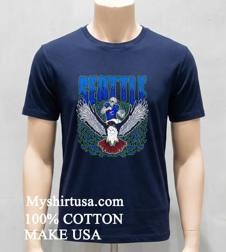 Ready to elevate your game day or everyday style? Grab your Seattle Seahawks Skeleton Football Player Riding A Hawk Shirt now! Why settle for ordinary? Crafted from 100% American Cotton, soft, stretchy, breathable it’s yours for just $23 USD with lightning-fast 3-5 day US delivery. Embrace that Vintage, Streetwear, American style! Find your perfect fit, only at Myshirtusa.