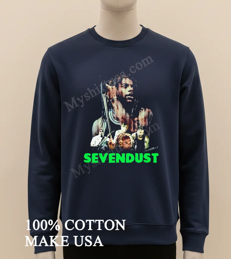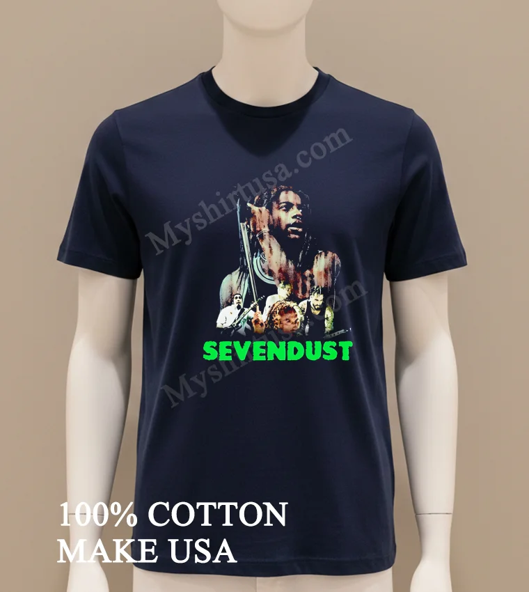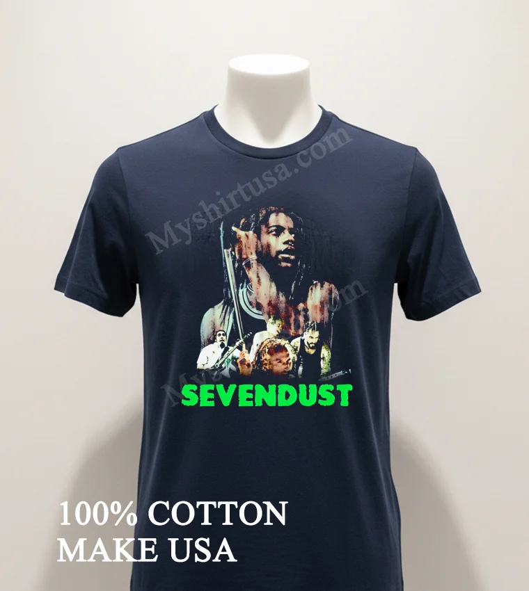 Now, let’s talk about this shirt. The vibrant green logo against the deep black background isn’t just a design; it’s a statement. Unlike some flimsy band tees that crack after two washes, this one feels substantial, like it’s built to last. It’s a classic crew neck, relaxed fit, making it perfect for throwing on with a pair of distressed jeans for a concert or even layering under a flannel for that authentic American streetwear vibe. Made from 100% American Cotton, it’s incredibly soft, breathable, and has just the right amount of stretch. To keep that awesome green logo popping, turn it inside out, wash cold with similar colors, and tumble dry low. Seriously, don’t blast it with hot water or high heat; treat your band tee right! You’ll see fans debating tour setlists and sharing their Sevendust style all over Reddit’s r/Metal or Facebook fan groups, making this shirt a hot topic.