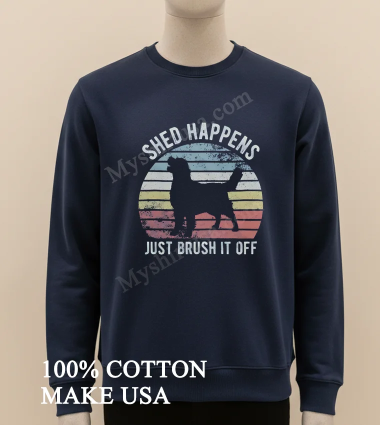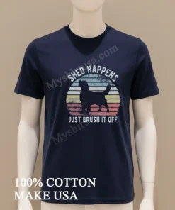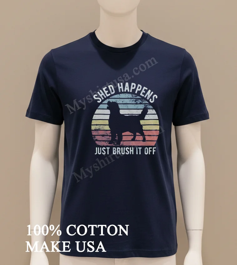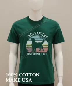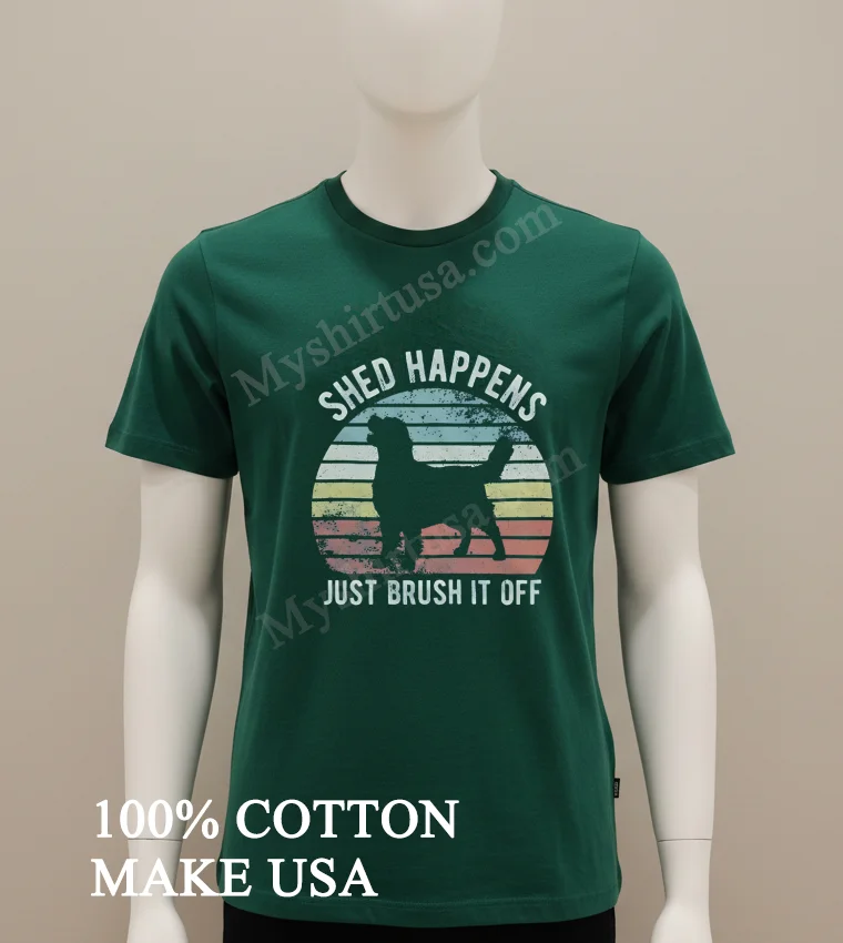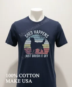 Let’s talk about what makes this tee truly special. The design? It’s pure genius in its simplicity. A beautifully rendered silhouette of a Golden Retriever, instantly recognizable and adored, paired with the witty, yet profoundly uplifting phrase, “Shed Happens Just Brush It Off.” This isn’t just a cute dog shirt; it’s a lifestyle statement. While other tees might have fleeting trends, this design resonates deeply with pet owners and anyone who appreciates a resilient outlook on life. It’s a conversation starter, a gentle reminder not to sweat the small stuff, literally and figuratively. Crafted from premium 100% American cotton, this shirt isn’t just soft; it’s an experience. It’s that perfect weight not too thin, not too heavy that drapes just right. The style is classic crew neck, an enduring silhouette that looks great on everyone. You can rock it with your favorite vintage Levi’s and sneakers for that quintessential American casual look, or dress it up a notch with a layered flannel and some chinos for a smart-casual vibe. For a true “dog mom” look, pair it with some comfy leggings and your go-to walking shoes. To keep your beloved tee looking its best, we recommend turning it inside out before washing in cold water with similar colors. Tumble dry on low heat or, even better, lay flat to dry to preserve the print and the fabric integrity. Avoid harsh detergents and bleach, and iron on the reverse side if needed. With a little love, this shirt will be your go-to for years to come, just like your loyal Golden Retriever.