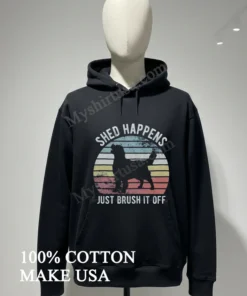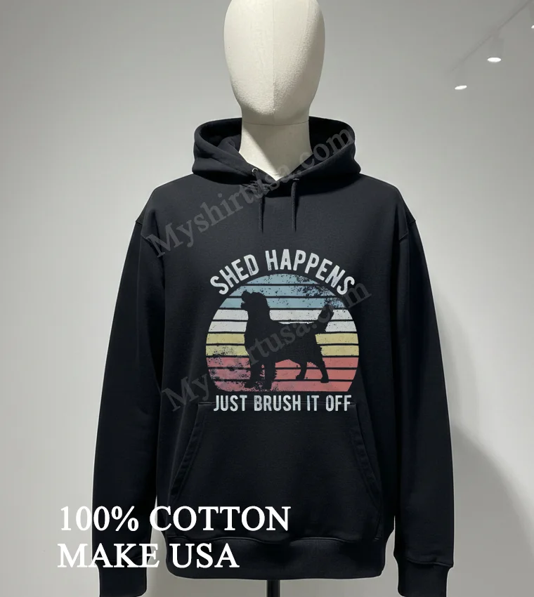Remember seeing those snaps of Taylor Swift, even on a casual coffee run, looking effortlessly cool in a graphic tee? It just screams ‘I’m comfy, I’m stylish, and I’m ready for whatever the day throws at me.’ That’s the vibe we’re talking about with the Shed Happens Just Brush It Off Golden Retriever Silhouette Shirt. Whether you’re a proud Golden Retriever parent navigating shedding season (we feel you!), or just someone who believes in shaking off the small stuff, this tee is your spirit animal. It’s perfect for those weekend farmers market trips, a casual brunch with friends, or even just lounging at home binging the latest Netflix hit. With the rise of “dopamine dressing” and personalized fashion being front and center in today’s American style landscape, a shirt that expresses your love for your furry friend and your resilient attitude is more than just clothing it’s a mood. It taps into the “cozy core” aesthetic that’s dominating social media feeds and major fashion blogs right now, proving that comfort and personality can indeed go hand-in-hand.