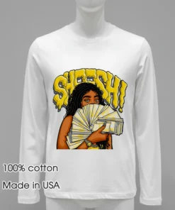 Ready to make a bold statement? Grab your Sheesh Woman Holding Money Cash Shirt today! Crafted from 100% American Cotton, it’s soft, breathable, and just $23 USD. Enjoy speedy 3-5 day US delivery. Elevate your Streetwear, American style with Myshirtusa!
