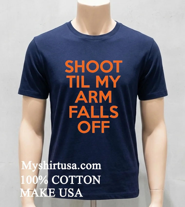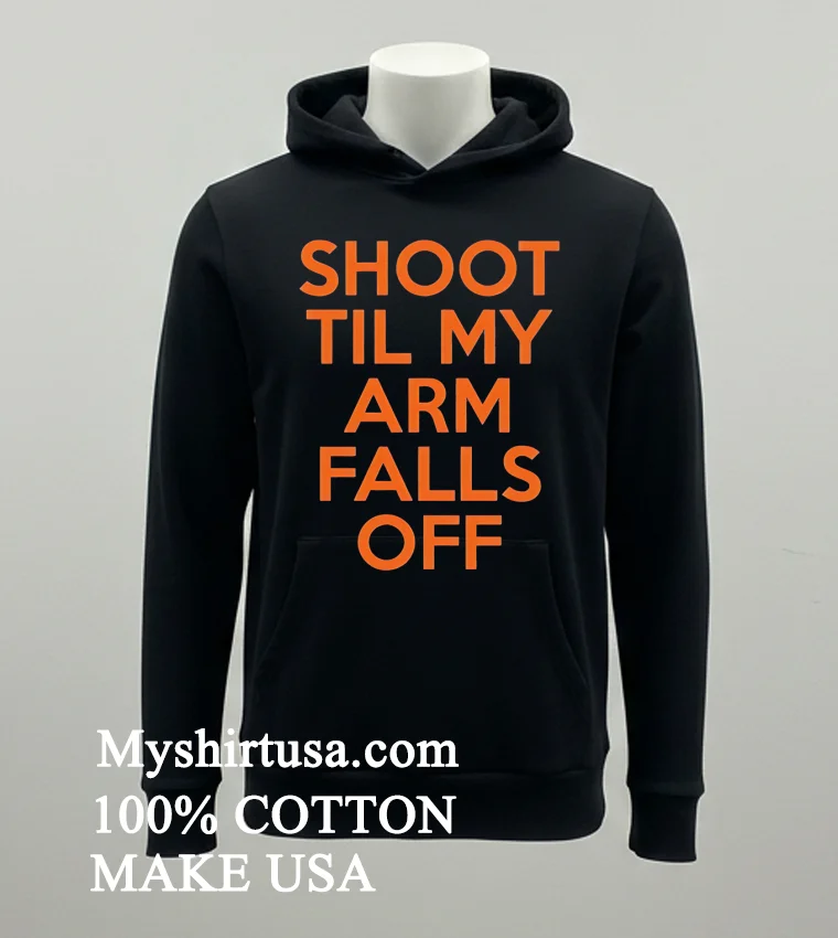 Let’s get real about what makes a great tee, because as an American consumer, I’ve seen my share of duds. The design on this shirt isn’t some flimsy iron-on that’ll crack after two washes; it’s a high-quality, screen-printed graphic that feels like it’s part of the fabric itself. That bold, declarative statement, “Shoot Til My Arm Falls Off,” resonates deeply with anyone who’s ever pushed their limits it’s both humorous and incredibly motivating. Unlike those thin, shapeless tees that lose their form by lunch, this one holds up. We’re talking 100% premium American cotton, a material that just feels substantial, soft, and breathable against your skin, perfect for a long day. The style is classic crew neck, a true American staple, but with a modern cut that’s relaxed without being baggy. You can rock this shirt in so many ways. For a casual weekend vibe, throw it on with your favorite distressed jeans, some classic sneakers, and maybe a vintage ball cap think effortless streetwear, a look that’s always trending. Heading out for a quick bite? Layer it under an open plaid flannel or a denim jacket for that rugged, all-American aesthetic. It’s versatile enough to go from the basketball court to a backyard BBQ. Now, about keeping it looking great: it’s super easy. To ensure that graphic stays sharp and the cotton remains soft, wash it inside out in cold water with similar colors. Skip the harsh bleach. Tumble dry on low heat or, better yet, hang it to dry. This not only preserves the print but also helps prevent shrinkage and extends the life of the fabric. Trust me, treating your clothes right means they’ll treat you right for seasons to come. It’s an investment in your comfort and your style.