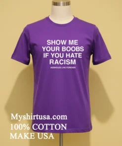 Ready to make your voice heard with style? Why wait to wear your convictions? Grab your Show Me Your Boobs If You Hate Racism Shirt today! Crafted from 100% American Cotton, soft, stretchy, breathable, it’s just $23 USD. Enjoy fast 3-5 day delivery across the US. Embrace Vintage, Streetwear, or classic American style. Your statement, your shirt, only at Myshirtusa!