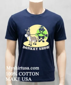 Ready to add some legendary fun to your closet? Why settle for boring when you can wear a masterpiece? With our commitment to 100% American Cotton, soft, stretchy, breathable comfort, and a wallet-friendly price of just $23 USD, isn’t it time you experienced the difference? And with 35 day delivery in the US, your new favorite Vintage, Streetwear, American style tee will be with you before you can say “Waffles!” Add the Shrek Donkey Show Cartoon Shirt to your cart today and let Myshirtusa deliver pure joy straight to your door.