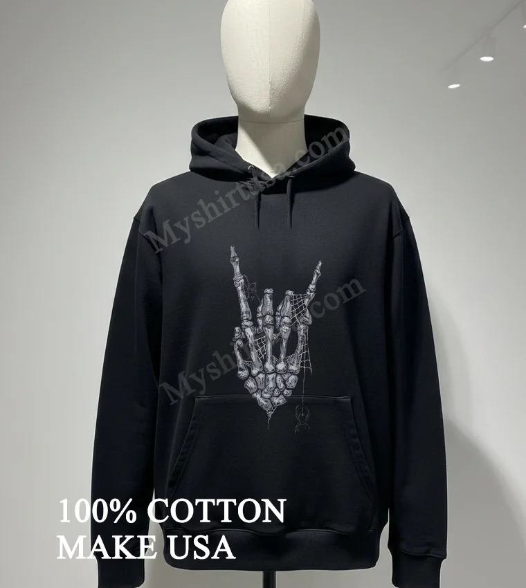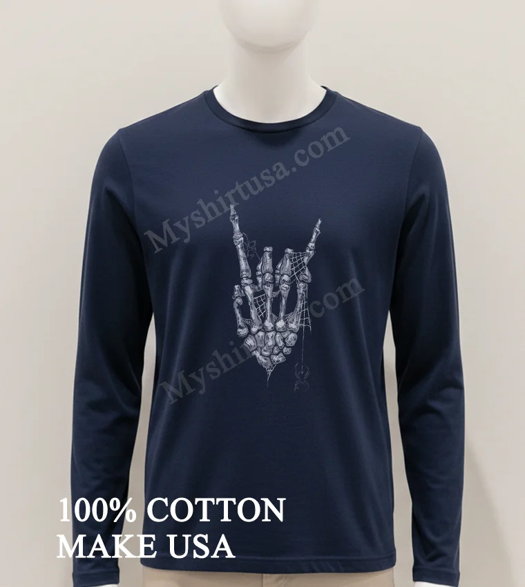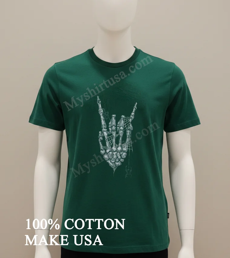 Why wait to express your true, authentic style? Grab your Skeleton Rock On Hand Hand Sign Spider Web Halloween Graphic Shirt today! Crafted from 100% American Cotton, soft, stretchy, and breathable, this vintage streetwear staple is just $23. Expect quick 3-5 day US delivery. Isn’t it time your wardrobe reflected your personality? Elevate your American style effortlessly! Shop now at Myshirtusa! #vintagetshirt #americanfashion #designtshirt #streetwearusa #rockonstyle