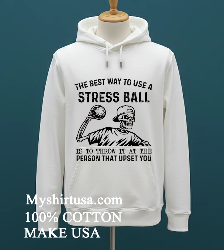 Why wait to express yourself? Grab your own Skeleton The Best Way To Use A Stress Ball Is To Throw It At The Person That Upset You Shirt today! Crafted from 100% American Cotton, soft, stretchy, and breathable, this $23 USD tee promises vintage, streetwear, American style delivered to your door in 3-5 days. Isn’t it time your wardrobe reflected your witty side? Order now from Myshirtusa!