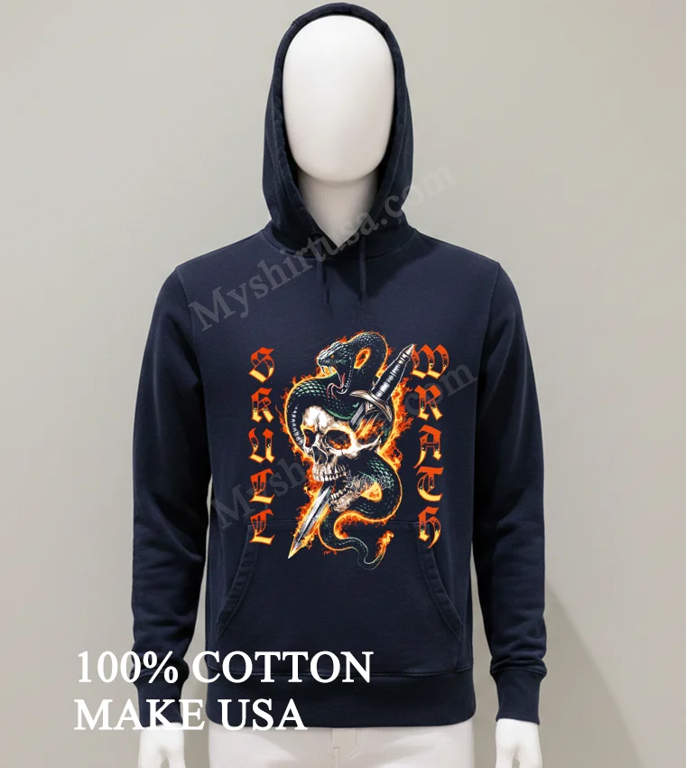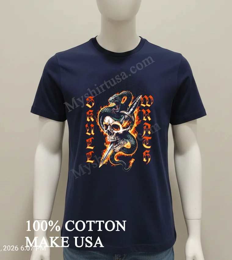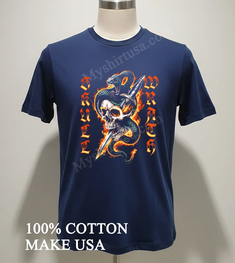 Ready to upgrade your wardrobe with a statement piece? Why wait? Dive into the Skull Wrath Snake Serpent Wrapped Around Dagger Sword Fire Flame Shirt phenomenon today! We guarantee 100% American Cotton, soft, stretchy, breathable comfort for just $23 USD. Get yours with lightning-fast 3-5 day delivery in the US. Embrace that Vintage, Streetwear, American style! Shop now at Myshirtusa!