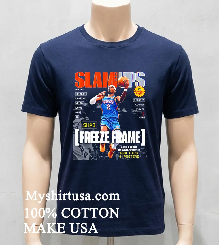 Ready to own a piece of the moment? Why settle for ordinary when you can showcase a dynamic “freeze frame” with our Slam Ups Shai Gilgeous Alexander Freeze Frame A Full Issue Of Wall Worthy Shirt? Crafted from 100% American Cotton, it’s soft, stretchy, and breathable. Get this vintage, streetwear, American-style tee for just $23 USD, delivered free in 3-5 days across the US. Experience the Myshirtusa difference!