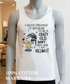 Just last week, my feed was blowing up with that clip of Martha Stewart casually sipping wine in her garden, looking absolutely unbothered. It got me thinking about how we celebrate those in our lives who truly ‘kill it’ the matriarchs, the mentors, the ones who juggle everything with a smile and maybe a glass of their favorite vintage. That’s exactly when the Snoopy Crazy Old Nany Drinking Wine Killing It Shirt popped into my head. It’s not just a tee; it’s a statement. Remember how ‘dopamine dressing’ became huge last year? This shirt is pure serotonin! It taps into that vintage aesthetic everyone’s loving right now, perfect for weekend brunch with the gals or a relaxed family BBQ. It’s for anyone who owns their wonderfully chaotic life, celebrating the ‘crazy’ and the ‘killing it’ with a wink. Whether you’re cheering on your favorite team from the couch or heading to a casual summer concert, this tee speaks volumes without saying a word, embodying that easygoing American style.
