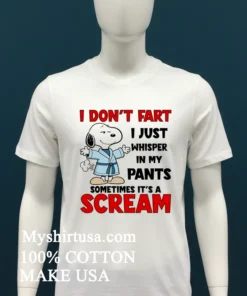 Ready to upgrade your humor and comfort? Why settle for less when you can rock the Snoopy I Don T Fart I Am Like I Just Whisper In My Pants Sometimes It S A Scream Shirt? Crafted from 100% American Cottonsoft, breathable, and styled for vintage streetwearit’s just $23.00 USD with 3-5 day US delivery. Grab yours!