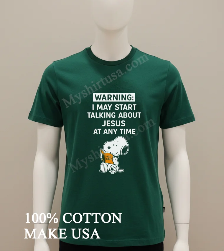 Ready to make a statement and feel great doing it? Experience the difference of 100% American Cotton soft, stretchy, breathable, and made to last. Priced at just $23 USD, with 3-5 day US delivery, your new vintage, streetwear, American-style Snoopy I May Start Talking About Jesus At Any Time Shirt is waiting. #AmericanCottonTee #FaithAndFashion #SnoopyHumor #StreetwearUSA. Grab yours now at Myshirtusa!