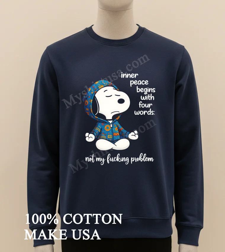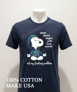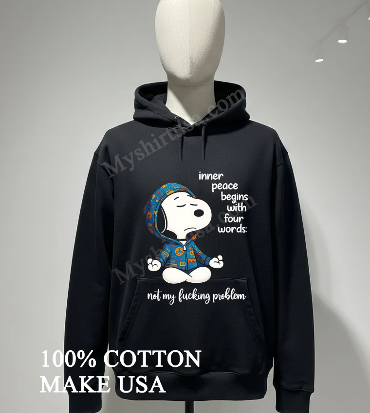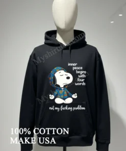 You know, with everything happening in fashion today, from the rise of comfort wear at Coachella to influencers showing off their ironic tees on TikTok, this shirt couldn’t be more relevant. It speaks to that whole “quiet quitting” vibe and the need for mental health awareness we’re seeing everywhere from New York Fashion Week to everyday street style. This isn’t just a shirt; it’s a mood. And thank goodness at myshirtusa.com, snagging your own Snoopy In Hoodie Inner Peace Begins With Four Words Not My Fucking Problem Shirt is ridiculously easy. Seriously, if you’re looking for that perfect “inner peace tee,” “funny Snoopy shirt,” or “problem solving apparel,” you’ve found it.