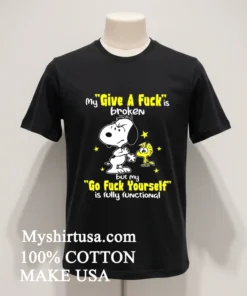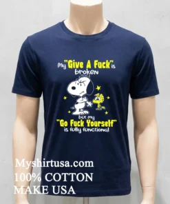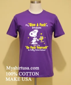 Ready to make a statement that truly speaks your mind? Why settle for anything less than pure comfort and unapologetic humor? Grab your Snoopy My Give A Fuck Is Broken But My Go Fuck Yourself Is Fully Functional Shirt today! Crafted from 100% American Cotton soft, stretchy, breathable it’s only $23 USD. Enjoy swift 3-5 day delivery. Embrace that Vintage, Streetwear, American style!
