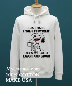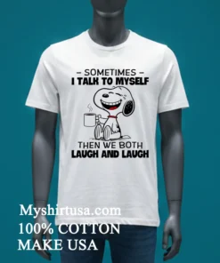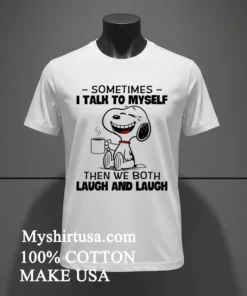 Let’s dive into what makes this tee a standout. The design, front and center, is classic Snoopy, but with a twist that’s pure gold: “Sometimes I talk to myself, then we both laugh and laugh.” It’s not just another Snoopy print; it’s an affirmation of embracing your inner child and your unique sense of humor. Unlike those stiff, generic graphic tees out there, this one feels personal, like it was made just for you. As for the shirt itself, we’re talking premium comfort here. It’s crafted from 100% American Cotton, so you know it’s soft, stretchy, and breathable absolutely essential for those warm summer days or for layering when there’s a chill in the air. Picture this: you can rock it with your favorite pair of vintage denim for a laid-back, “streetwear casual” vibe, or throw it on with some comfy joggers for a weekend of binge-watching. When it comes to caring for it, we make it easy to keep that vibrant print and super-soft feel. Just turn it inside out, wash with cold water, and tumble dry on low. Steer clear of bleach, and it’ll stay looking fresh and fantastic, ready for countless laughs.