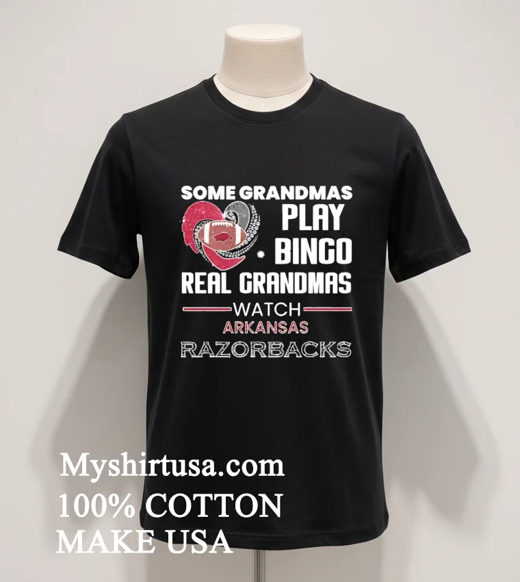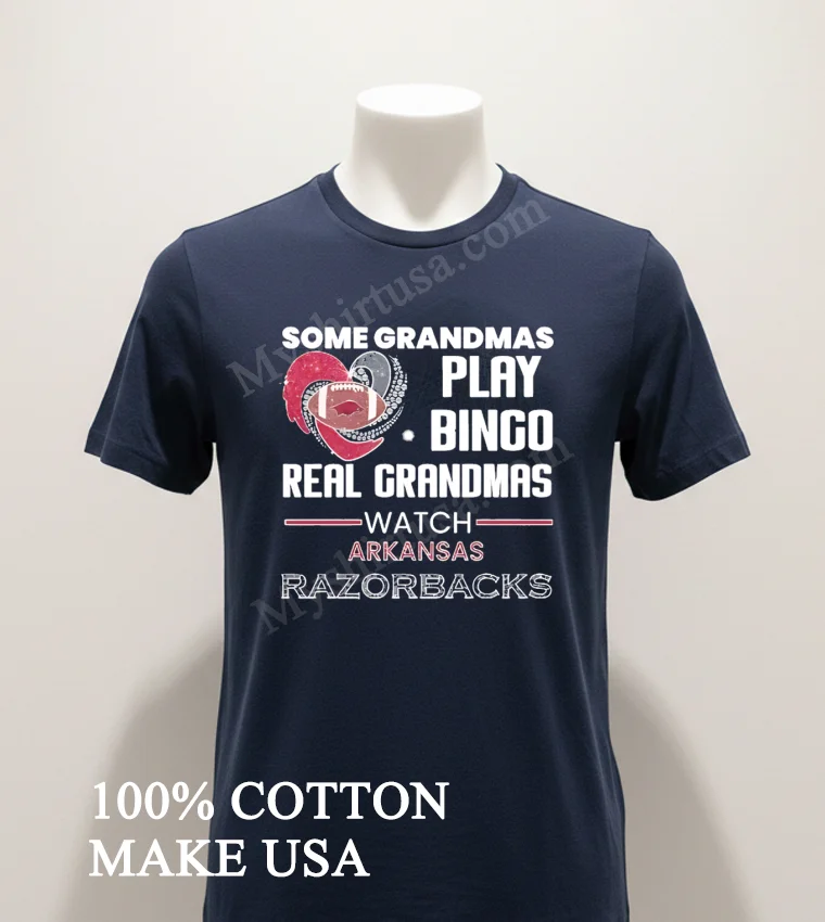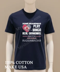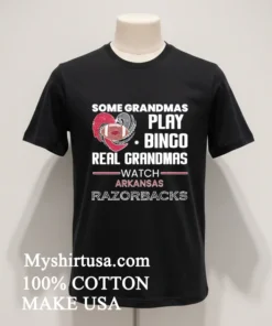 “Honestly, I was skeptical about ordering another shirt online, but the reviews for the Some Grandmas Play Bingo Real Grandmas Watch Arkansas Razorbacks Shirt from Myshirtusa were incredible! ‘Fastest shipping ever!’ one said, and they weren’t wrong mine arrived in just 3 days, free shipping too. My heart just jumped with joy when it landed on my porch! I always wonder how easy returns are, just in case, but I have a good feeling about this one. It’s the kind of comfortable tee you just know will become a cherished go-to for years.