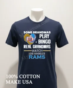 Let me tell you about this shirt it’s a conversation starter, not just another piece of fan merchandise. The ‘Some Grandmas Play Bingo’ message truly stands out. It’s witty, relatable, and perfectly captures that fierce, no-nonsense loyalty a true Rams fan grandma possesses something generic logo shirts just can’t touch. As an American consumer, I appreciate that personal touch. And the material? We’re talking 100% American Cotton, folks! It’s super soft, breathable, and feels amazing against your skin, none of that stiff, scratchy stuff you sometimes get. I love styling mine with my favorite distressed Levi’s and classic Converse high-tops for that perfect casual-cool American streetwear vibe. On cooler nights, I’ll layer it under an open plaid flannel shirt. To keep it looking its best, I always wash it cold, inside out, and tumble dry low trust me, it’ll stay vibrant for many seasons to come, just like my Rams spirit. This tee isn’t just for game day; it’s my weekend uniform for errands, coffee runs, or just chilling. Want to see more fans rocking it? Check out the buzz on the official ‘Rams House’ Facebook groups or the lively NFL subreddits; this shirt is making waves everywhere, and for all the right reasons!