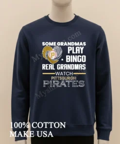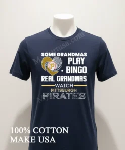 What a speedy delivery! My Some Grandmas Play Bingo Real Grandmas Watch Pittsburgh Pirates Shirt from Myshirtusa arrived in just three days, free shipping included talk about service! I always appreciate clarity on delivery and returns, but the sheer joy of this super soft tee melted all concerns. It’s quickly become my new favorite, perfect for everyday comfort and proudly showing off my team spirit, whether I’m running errands or just lounging at home. That feeling of a perfect fit, great quality, and lightning-fast arrival? Absolutely priceless, making it a trusted staple in my wardrobe.