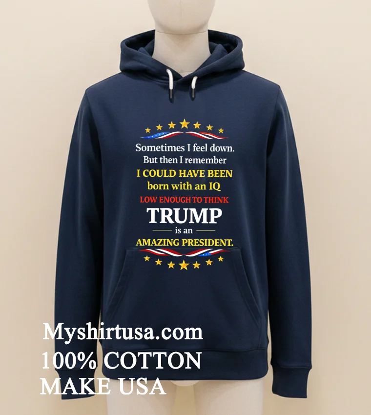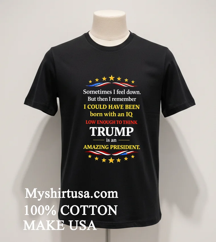 Remember when that clip of Trevor Noah talking about the sheer absurdity of some political takes went viral after the last primary debate? That perfectly captured the vibe of this tee. You know, those days when you’re doom-scrolling, feeling a little overwhelmed by… well, everything? Maybe you just saw another headline that made you sigh so hard your ancestors felt it. This isn’t just a shirt; it’s a silent nod to everyone else navigating the wild ride of modern American politics, all while keeping a sense of humor. It’s perfect for that casual Sunday brunch where you want to make a subtle statement, or for hitting up a local brewery. In an era where graphic tees are leading the charge in expressive fashion, moving beyond just logos to really embody a mood, this Sometimes I Feel Down But Then I Remember I Could Have Been Born With An Iq Low Enough To Think Trump Is An Amazing President Shirt is a standout. It’s comfort wear with a cutting edge, totally in line with the current street style trend of blending political commentary with everyday casuals.