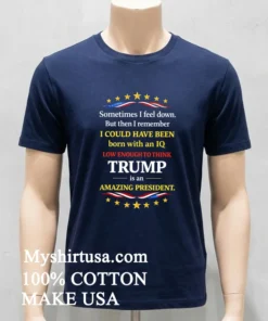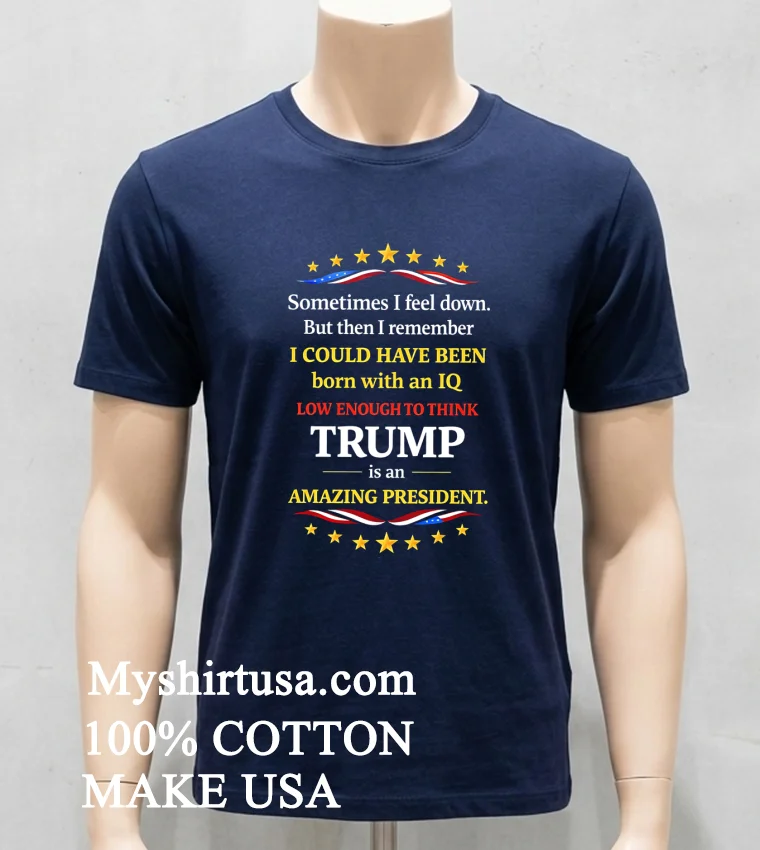 Ready to express yourself with a piece of American fashion history? Why wait? Our Sometimes I Feel Down But Then I Remember I Could Have Been Born With An Iq Low Enough To Think Trump Is An Amazing President Shirt is 100% American Cotton soft, stretchy, breathable for just $23 USD. Enjoy 3-5 day US delivery! Isn’t it time your wardrobe reflected your wit? Order now from Myshirtusa!