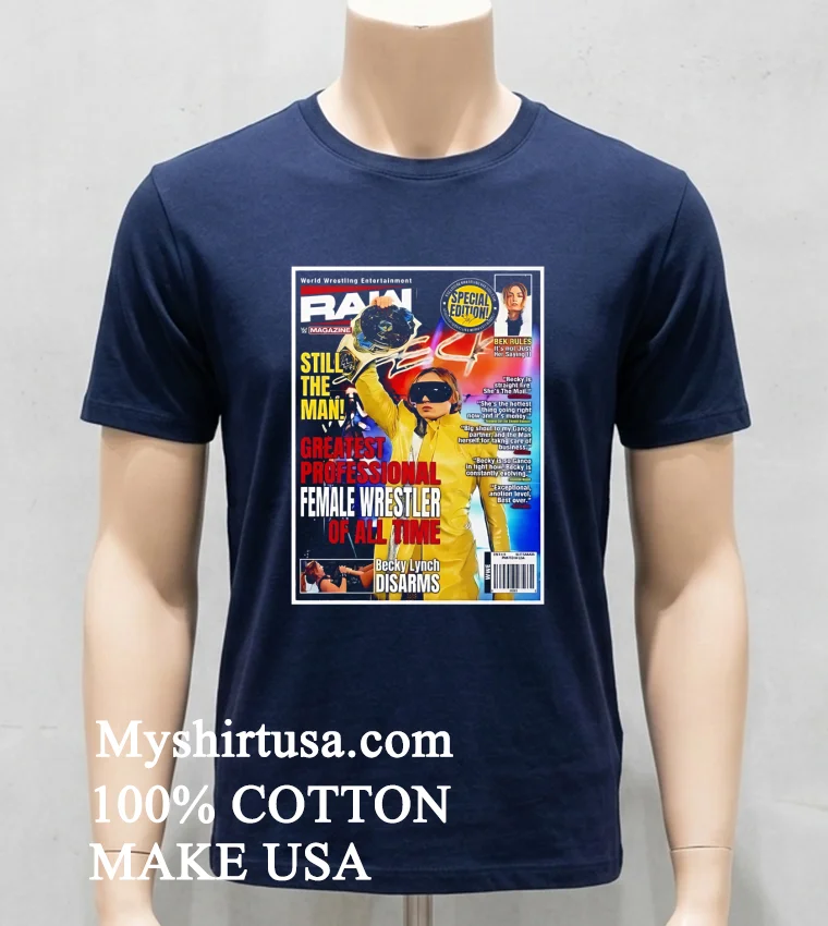 Let’s talk about what truly sets this tee apart. The design itself isn’t some flimsy, quick-print job you find everywhere. The poster image of Becky Lynch is sharp, vibrant, and feels embedded into the fabric, not just sitting on top like those cheap iron-ons that crack after two washes. This isn’t your average mass-produced souvenir; it’s a piece designed with care, reflecting a true American appreciation for quality graphics and longevity it simply looks better and lasts longer than most graphic tees on the market.