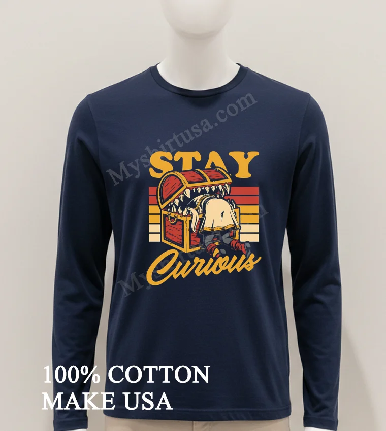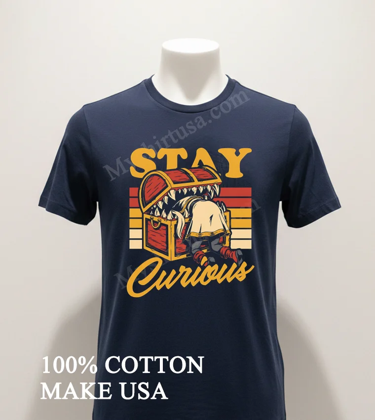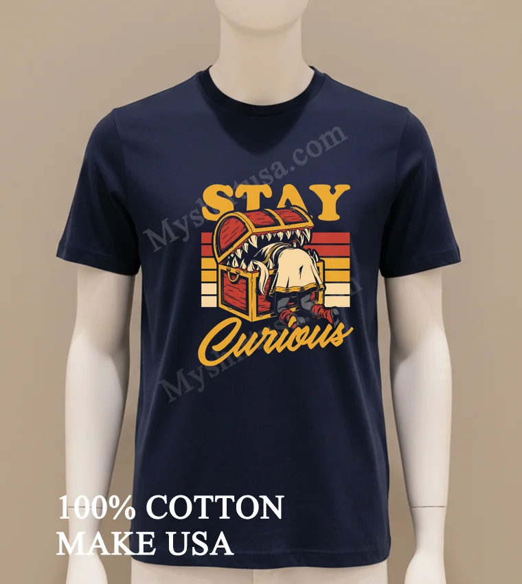 Ready to upgrade your wardrobe with a piece that sparks joy and conversation? Why settle for ordinary when you can embrace extraordinary comfort and style? Our commitment? High-quality, beautiful T-shirts like the Stay Curious Mimic Treasure Chest Frieren Shirt, crafted from 100% American Cottonsoft, stretchy, and breathable. All yours for just $23 USD, with speedy 3-5 day delivery across the US. Perfect for that Vintage, Streetwear, or classic American style. Discover your next favorite at Myshirtusa today!
