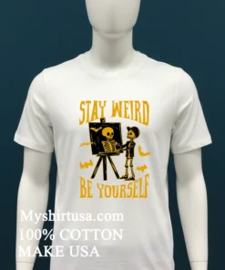 Remember Lizzo championing self-love and authenticity, urging us to embrace our true selves? That powerful message perfectly captures the spirit of the Stay Weird Skeleton Be Yourself Halloween Shirt. Picture TikTok, everyone embodying ‘main character energy’ through unique stylesthrifted treasures to bold graphics. This tee isn’t just for Halloween; it’s a year-round anthem. Planning a fall festival, movie night, or injecting personality into daily streetwear? While ‘quiet luxury’ trends, sometimes you just need to declare ‘I’m here, I’m authentically me!’ This shirt speaks to those embracing individuality in today’s expressive fashion climate, making a subtle yet impactful statement. Own your narrative, comfortably and confidently.