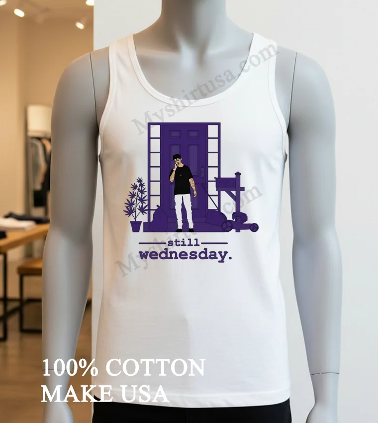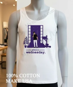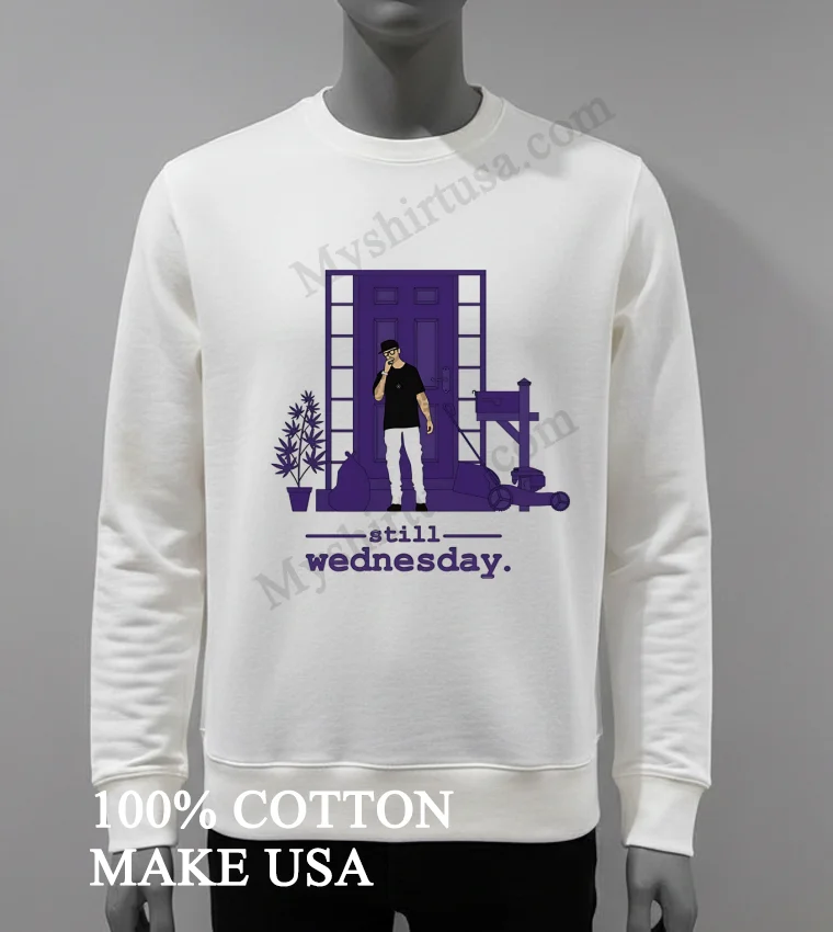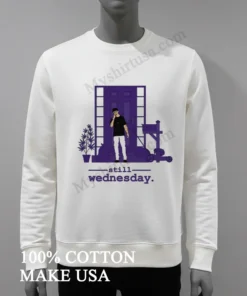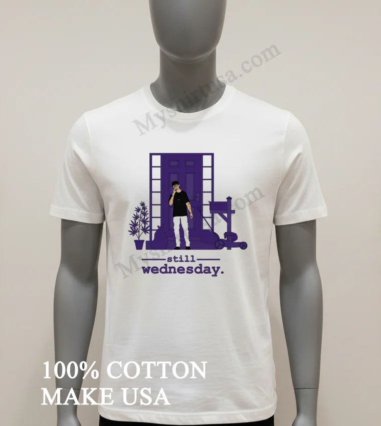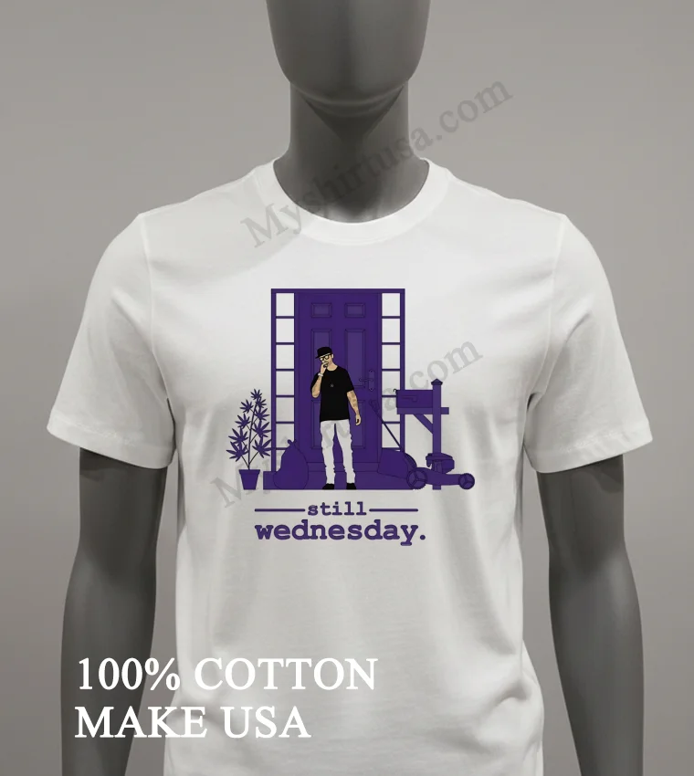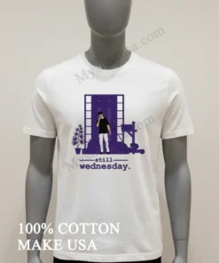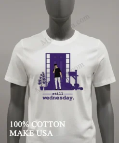 Let’s really dive into what makes this shirt a standout. The “Still Wednesday Man Smoking In Front Of Purple House” image isn’t just a random graphic; it’s a whole, captivating narrative. It’s got this melancholic yet artistic feel, almost like a piece of classic American contemporary art you’d stumble upon in a niche gallery. The muted, almost faded purple of the house contrasting with the stoic figure of the man creates a depth you rarely see on a t-shirt. It’s not a loud, in-your-face design, but it definitely sparks curiosity and conversation. Unlike those mass-produced, generic pop-culture tees, this one feels personal, like you’ve unearthed a hidden gem. Its artistic integrity is a huge advantage you won’t see everyone else wearing the exact same thing.