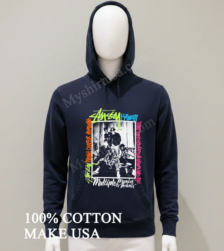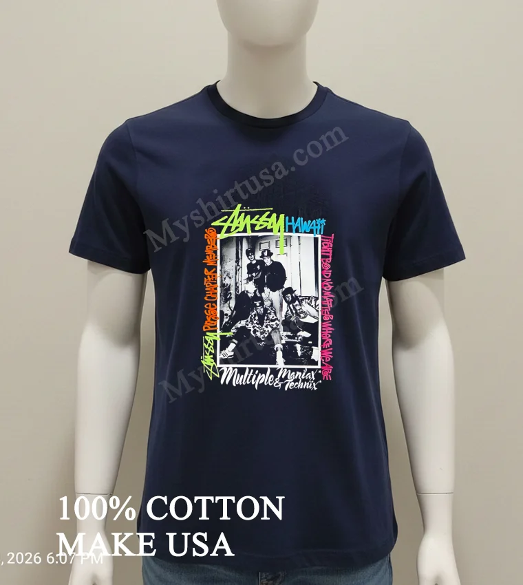Ready to elevate your wardrobe with a piece that tells a story? Why settle for ordinary when you can own the extraordinary? Dive into the legacy of streetwear with the Stussy Hawaii Posse Chapter Members Multiple Maniax Technix Graphic Shirt! Crafted from 100% American Cotton, soft, stretchy, and breathable for ultimate comfort, this Vintage, Streetwear, American style essential is priced at just $23 USD. Expect lightning-fast delivery in 35 days right to your US doorstep. Don’t miss out on this high-quality, beautiful tee!