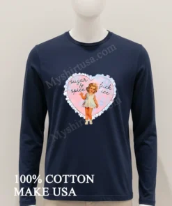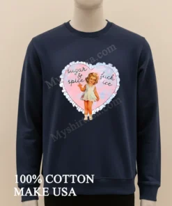 The charming vintage aesthetic of the Sugar And Spice Vintage Girl Heart Frame Ruffle Shirt perfectly aligns with today’s retro revival and cottagecore trends, seen everywhere from TikTok fashion challenges to local craft markets. Searching for a vintage girl tee, heart frame shirt, or ruffle print top? At myshirtusa.com, you can quickly and easily purchase this iconic design and join the fashion conversation, hassle-free.