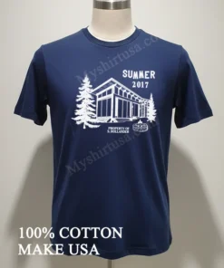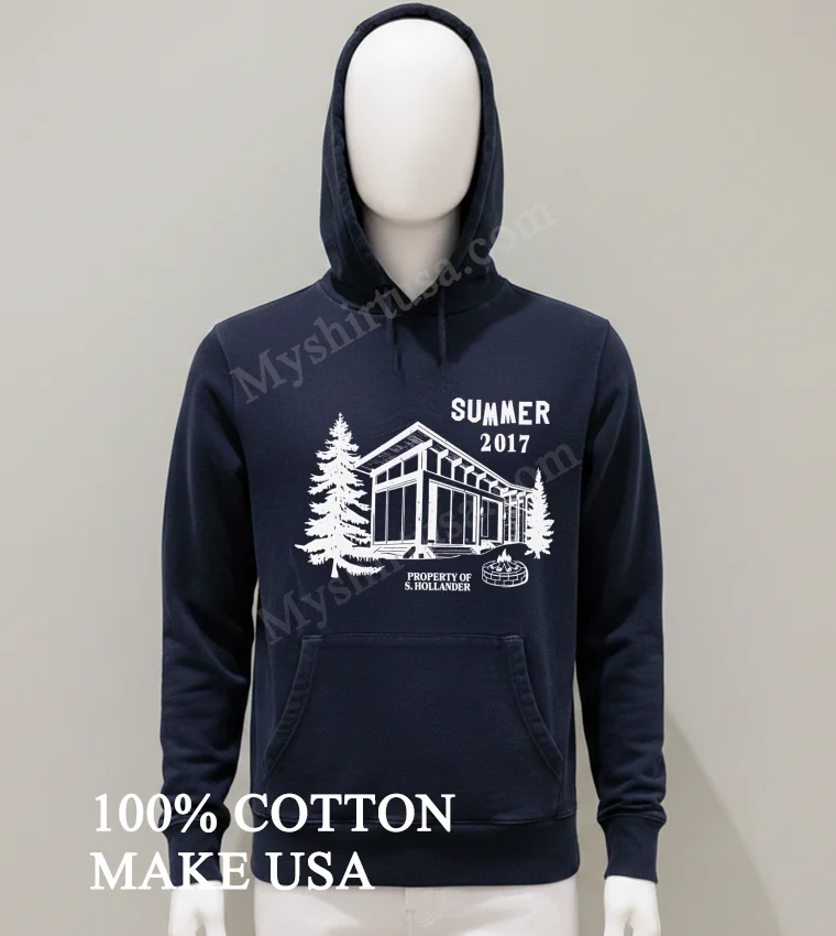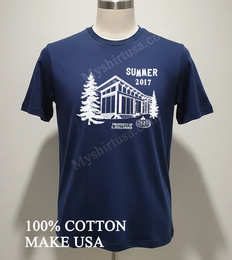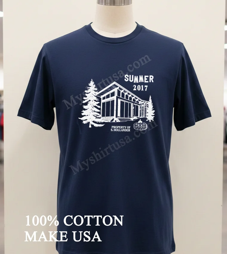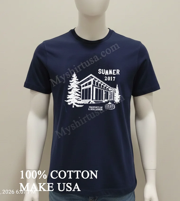 What makes this tee stand out from the endless racks of bland options? It’s all in the details. The graphic itself, featuring a serene cabin nestled among pine trees, complete with a crackling campfire and the personalized “Property Of S Hollander” detail from Summer 2017, evokes a specific, nostalgic Americana. It’s not just a generic outdoor scene; it’s a memory, a story captured on fabric. This design choice elevates it beyond a basic graphic tee, making it a conversation starter, something truly unique. And let’s talk material! We’re talking 100% American Cotton, incredibly soft to the touch, with just the right amount of stretch. It breathes like a dream, perfect for those long summer days or layering up when the evening chill sets in. You won’t find that stiff, scratchy feel here. Style-wise, it’s effortlessly versatile. Pair it with your favorite faded jeans for that classic, rugged look, or throw it on with some cargo shorts for a relaxed weekend vibe. Ladies, try tying it up at the waist with a high-waisted skirt for a touch of vintage chic. To keep this beauty looking its best, wash it inside out in cold water with similar colors. Tumble dry on low heat or, better yet, hang it to dry to preserve the print and fabric integrity. No harsh bleach, please! It’s built to last, just like those summer memories.