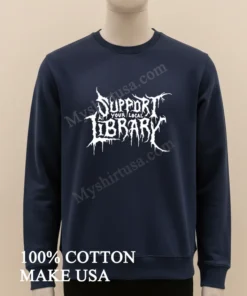 Forget those bland, corporate-logo tees or flimsy fast-fashion graphics that fade after two washes. The design on this shirt is a masterpiece of subversion. Picture this: classic, jagged death metal typography proudly declaring “Support Your Local Library,” perhaps with a stylized, subtly demonic librarian mascot or a skull wearing spectacles. It’s audacious, it’s witty, and it instantly sparks conversation. This isn’t just printed; it’s a statement piece, meticulously crafted to stand out in a sea of generic apparel. It speaks to a certain kind of person the one who appreciates irony, intellectual freedom, and a good blast beat.
