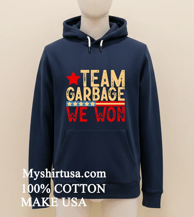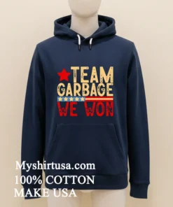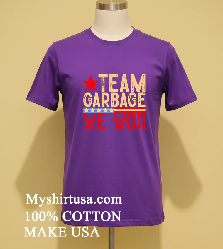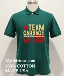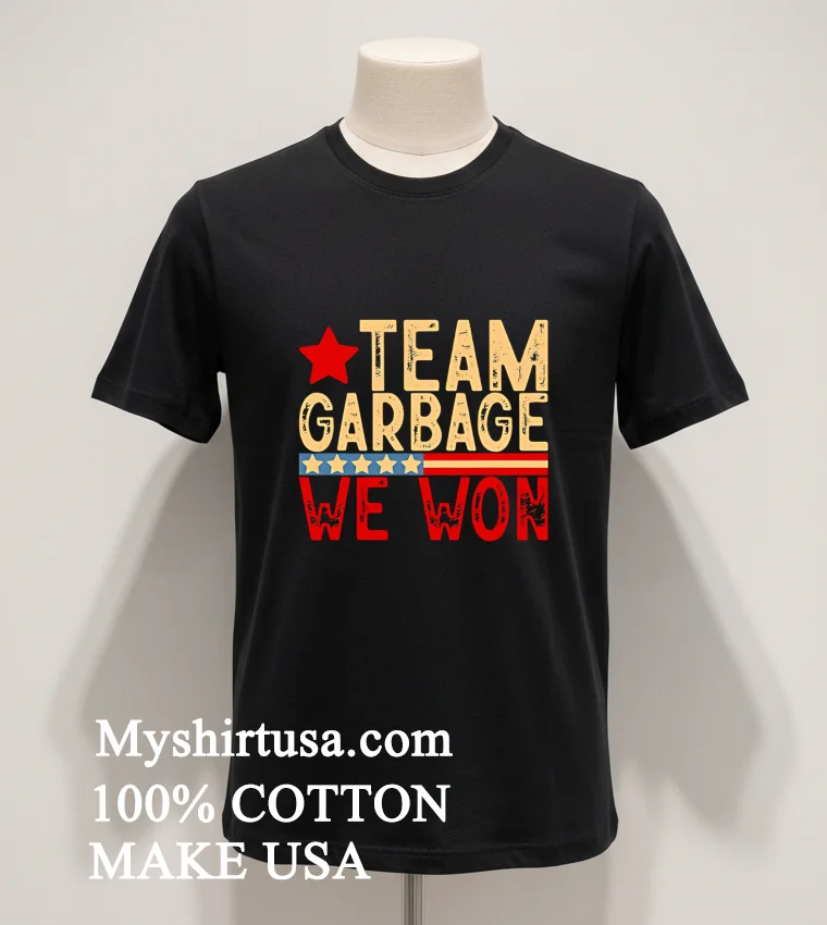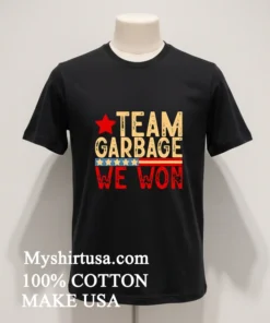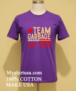 Let’s talk details. What makes this tee stand out from the sea of basic shirts out there? First off, the design itself: “Team Garbage We Won.” It’s bold, it’s witty, and it immediately sparks a conversation. It’s not just a logo; it’s a declaration. Unlike some flimsy graphic tees that look great online but feel cheap in hand, this shirt is crafted with attention to detail, from the crisp print that won’t crack or fade after a few washes to the carefully chosen typeface that screams authentic American cool. This isn’t some fast-fashion throwaway; this is a staple that says something about you, a piece you’ll reach for again and again because it feels right and makes you smile.