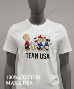 Let’s talk details, because this isn’t just any tee. The design elements of this shirt are pure Americana joy. Imagine Snoopy, Woodstock, and Charlie Brown in full hockey gear, intertwined with the iconic Team USA logo. It’s a nostalgic trip back to childhood while celebrating the competitive spirit of our nation. Unlike those generic, thin graphic tees that fade after a wash, this shirt boasts a vibrant, durable print that really pops. It’s an instant conversation starter, blending the timeless appeal of Peanuts with the patriotic fervor of Team USA a combination you won’t find just anywhere. Crafted from 100% American Cotton, it’s not just soft to the touch; it feels substantial, yet breathable, perfect for those warm summer days or layering up when there’s a chill in the air. The classic fit lends itself to endless styling possibilities: throw it on with your favorite distressed jeans and sneakers for a laid-back, vintage-inspired look, or tuck it into a pleated skirt with some chunky boots for a bolder streetwear statement. Want to make it last? We recommend washing it inside out in cold water with similar colors, tumble dry on low heat, or better yet, hang dry to preserve that awesome graphic and keep the cotton feeling fresh. Avoid harsh bleach, and iron inside out if needed, but really, it’s designed to be lived in and loved, not babied.