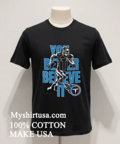 Remember when Taylor Swift rocked that custom Chiefs jacket during the playoffs, and suddenly everyone wanted their own team gear, but with a personal touch? That’s exactly the vibe we’re tapping into. The Tennessee Titans Nfl You Better Believe It Shirt isn’t just fanwear; it’s a statement. Imagine this: it’s game day, Sunday afternoon, the smell of grilling burgers fills the air. You’re at a backyard BBQ, maybe at Nissan Stadium for a tailgate, or just chilling on your couch, glued to the TV. You want to show your pride, not just any old way, but with something authentic, something that screams ‘Titan Up!’ This shirt is for those moments, whether you’re cheering on Derrick Henry’s next legendary run or reminiscing about Steve McNair’s glory days. It’s for the everyday fan, riding that wave of sports-luxe and ‘athleisure-meets-streetwear’ trends we’re seeing everywhere. It’s comfort, style, and unshakeable team spirit all rolled into one, perfect for showing your colors without sacrificing your street cred.