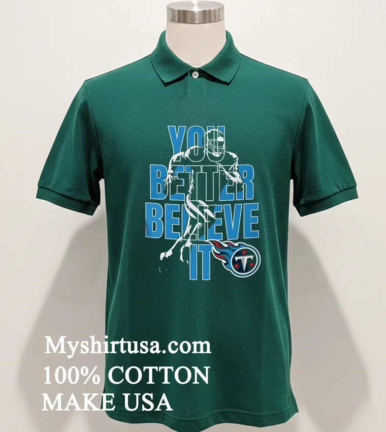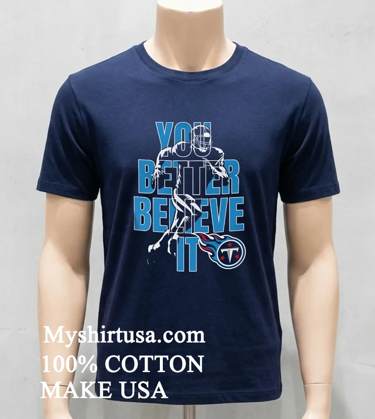 Ready to show your true colors? Why settle for less when you can have the best? Our Tennessee Titans Nfl You Better Believe It Shirt is crafted from 100% American Cotton soft, stretchy, breathable, and made to last. At just $23 USD, with fast 3-5 day delivery across the US, and a style that perfectly blends Vintage, Streetwear, and classic American cool, it’s a no-brainer. Elevate your fan game today!