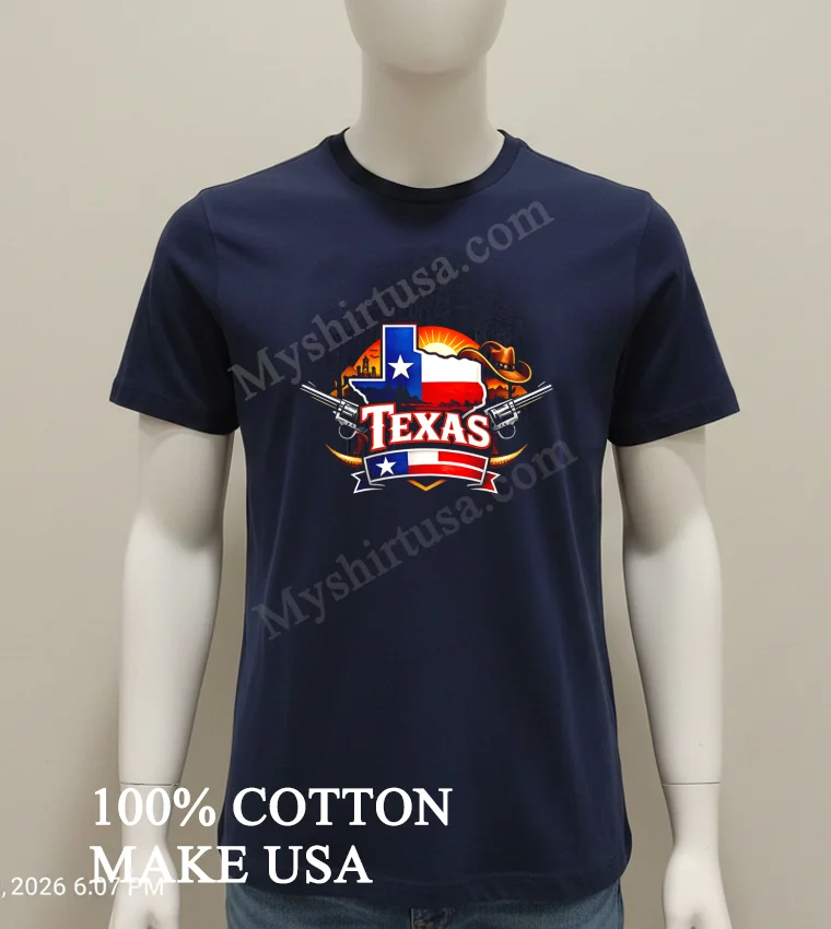 Let’s dive into what makes this tee a standout. First, the design oh boy, it’s a masterpiece. You’ve got the iconic Texas State Flag, bold and proud, artfully blended with a detailed map of the Lone Star State. Then there’s the classic cowboy hat, a symbol of grit and the open range, flanked by vintage revolvers that whisper tales of frontier spirit, not violence, but history, pure American West. And it’s all set against a stunning desert landscape that just screams freedom. Compared to those generic graphic tees out there, this one tells a story, a deep cut of Americana that’s truly unique. Material-wise, we’re talking about that good stuff soft, ringspun cotton that feels broken-in from the first wear. It’s got that classic American fit, perfect for layering or rocking solo. I usually throw mine on with a pair of worn-out jeans and my trusty boots, maybe a denim jacket if there’s a chill. For the ladies, it looks killer with cutoff shorts or even tucked into a skirt for a cool, edgy vibe. And caring for it? Simple. Wash cold, inside out, tumble dry low, and don’t even think about bleach. Treat it right, and this shirt will be your companion for years, like a good old friend.