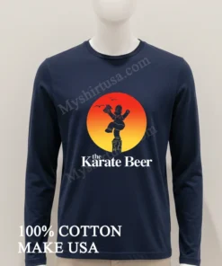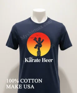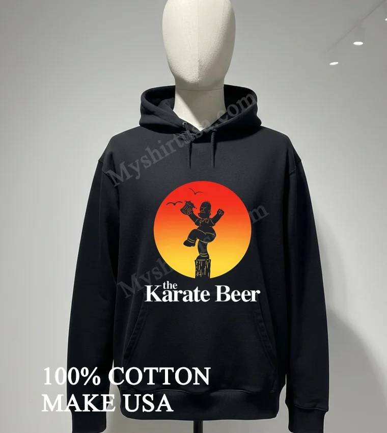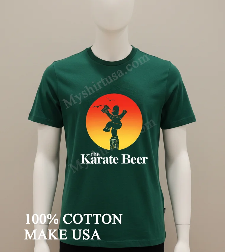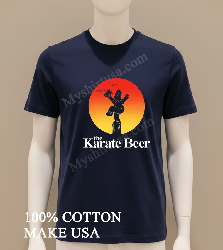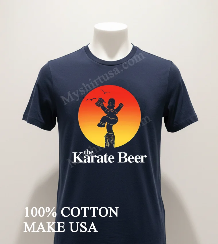What truly sets this shirt apart isn’t just the sheer brilliance of its design Homer Simpson, beer mug in hand, attempting Daniel LaRusso’s iconic Crane Kick it’s the sheer audacity! While other tees might stick to a single franchise, this one masterfully blends two titans of pop culture into a hilarious, instantly recognizable image. Made from 100% premium American Cotton, it’s not just super soft and breathable; it’s built to last, unlike those thin, cheap imitations you see around. This tee easily pairs with distressed jeans for a classic streetwear vibe, or layer it under a plaid shirt for a laid-back, authentically American style. To keep that vibrant print looking fresh and prevent fading, always wash it cold, inside out, and tumble dry low. Trust me, it’s a talking point everywhere from Reddit’s r/funny to viral TikTok trends, showing up on meme pages and in threads discussing the best crossover merch.