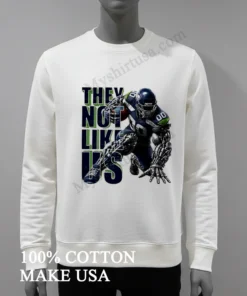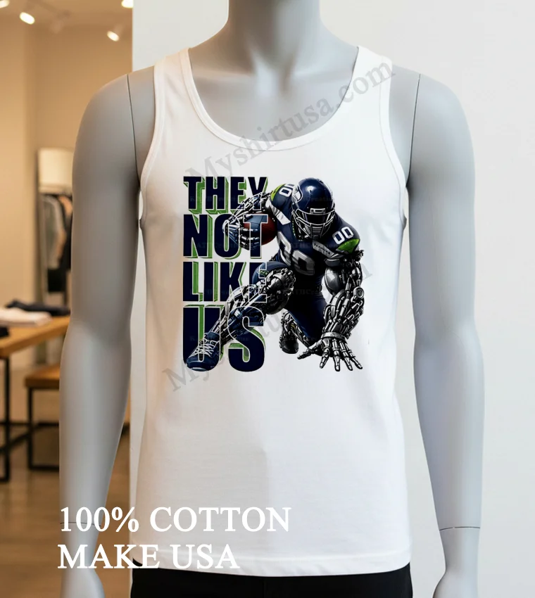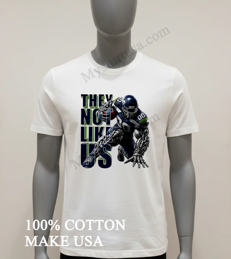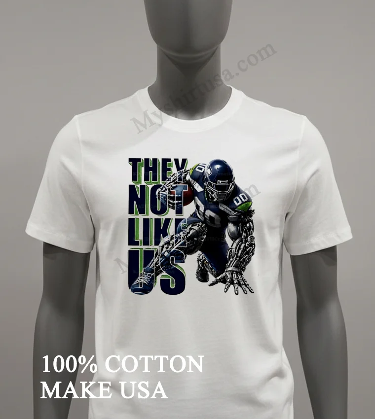Ready to own that ‘they not like us’ spirit? Why settle for less? This They Not Like Us Seattle Seahawks Robot Cyborg Football Player Shirt is 100% American Cotton, soft, stretchy, breathable just $23 USD. Enjoy 3-5 day US delivery, embodying Vintage, Streetwear, American style. Get yours from Myshirtusa today!