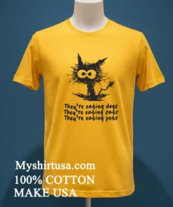 Remember that whole kerfuffle on TikTok last month when that viral video of a cat freaking out over a cucumber sparked a gazillion memes? Even Chrissy Teigen retweeted one with a caption like, “My spirit animal on Mondays!” That moment just perfectly encapsulates the vibe of the They Re Eating Dogs They Re Eating Cats They Re Eating Pets Scared Cat Shirt. This isn’t just another graphic tee; it’s a statement, a nod to that shared, slightly absurd, internet-fueled humor that binds us pet-obsessed Americans together. Whether you’re chilling at a local brewery, heading to a casual backyard BBQ, or just doom-scrolling through animal content on your couch, this shirt fits right in. It’s perfect for anyone who appreciates a good laugh and wants to infuse their everyday wardrobe with some authentic, current pop culture flair. Forget the drab, minimalist trends; this tee is all about expressing your unique personality in a world craving comfort and individuality. It’s the ultimate conversation starter, echoing that recent surge in Y2K nostalgia combined with today’s street-style sensibilities where bold graphics reign supreme.