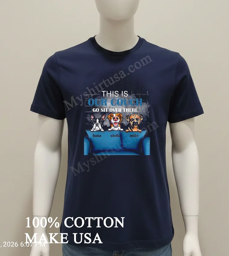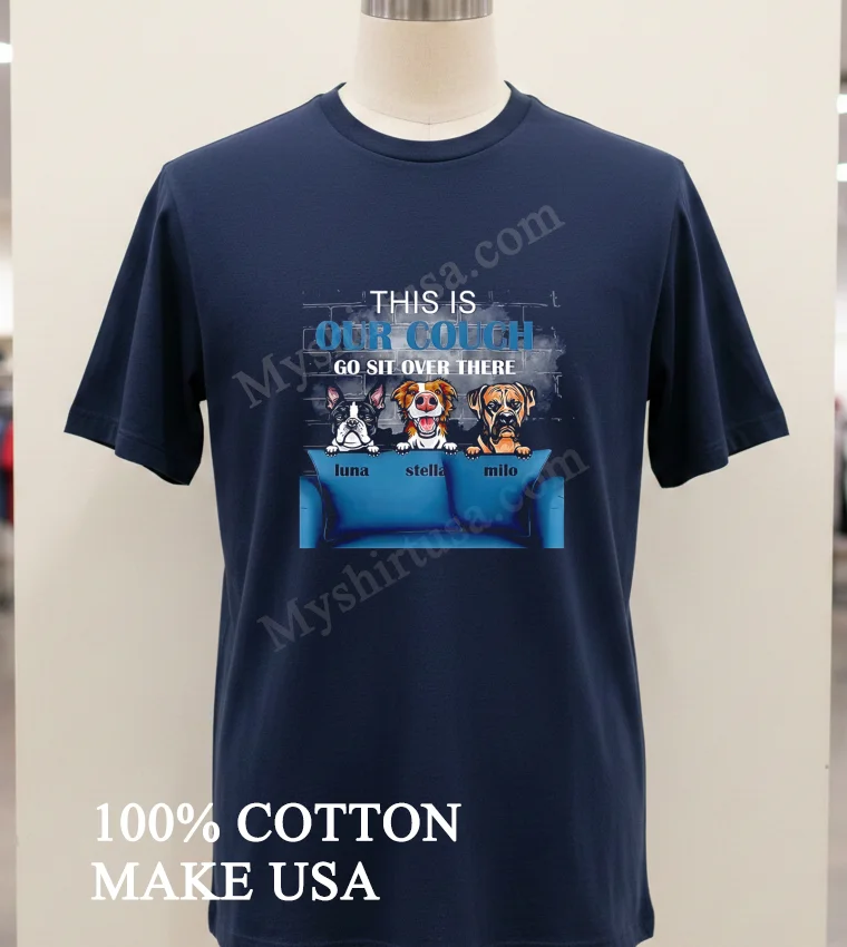Remember that viral tweet last month from a major influencer, @DogDadLife, showing his three pups completely sprawled across his living room sectional with the caption, “Guess who owns this couch now? (Hint: It’s not me.)” It blew up, sparking a relatable avalanche of memes and comments from pet parents everywhere. Well, if that resonated deep in your soul, then the This Is Our Couch Go Sit Over There Luna Stella Milo Dog Shirt is practically your spirit animal. This isn’t just a shirt; it’s a badge of honor for anyone whose furry overlords named Luna, Stella, and Milo (or any combination thereof!) have staked their claim. It’s for the dog lover who embraces comfort-first fashion, blending humor with that effortless “dopamine dressing” vibe that’s all over the runways and street style blogs right now. Forget blending in; this tee lets you proudly display your domestic reality with a wink and a smile, making it perfect for dog park meetups, casual brunch, or simply enjoying a lazy Sunday at home, probably sharing your couch.