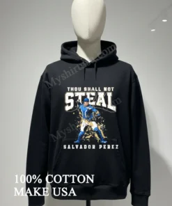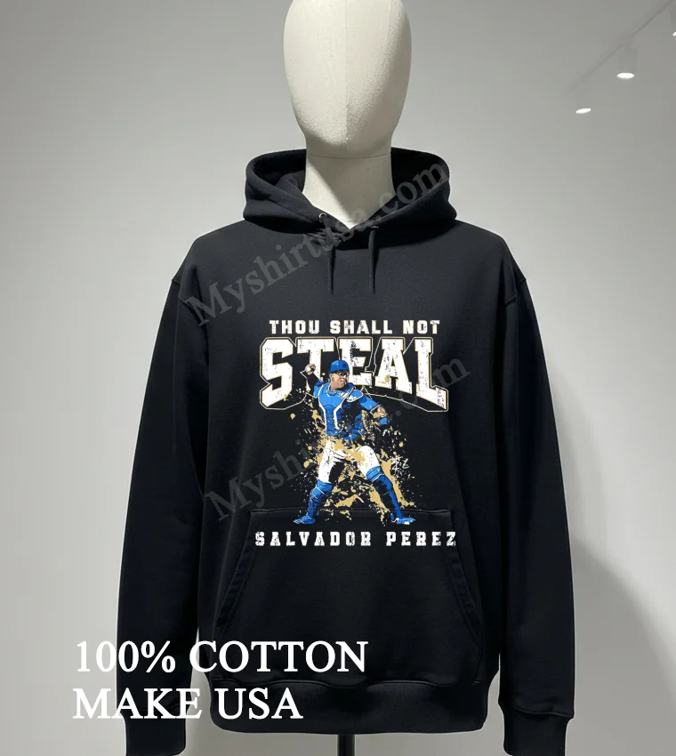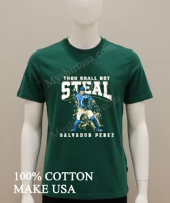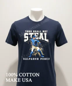 What really sets this tee apart from other shirts? It’s all in the design and quality. The graphic of Salvador Perez, mid-throw, with that bold ‘Thou Shall Not Steal’ text? It’s sharp, impactful, perfectly capturing his legendary defensive skill. Unlike flimsy prints that crack, ours is designed for longevity, maintaining its crispness and getting immediate recognition from fellow fans. This isn’t a generic design; it’s tailor-made for true game enthusiasts.