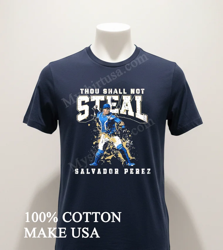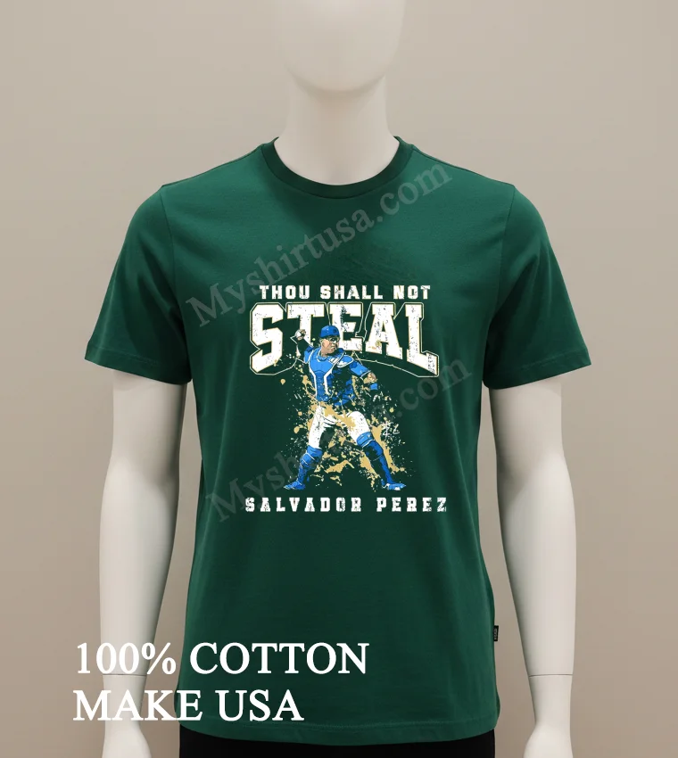 Getting my Thou Shall Not Steal Salvador Perez Kansas City Catcher Shirt from Myshirtusa was a joy! Customers consistently praise the ‘super-fast delivery’ and ‘amazing quality.’ Seriously, 3-5 days, free shipping? Incredible! I mean, I always wonder about returns, but I’ve never needed one. Their T-shirts just hit different that perfect comfy feeling I look forward to every time.