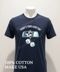 This isn’t just any T-shirt; it’s a statement piece perfectly timed for current American street style and personal expression trends. Whether you’re hitting up a local car meet showcasing custom rides, or just looking to add some playful edge to your daily wear, the Today S Your Lucky Day Reaper Rearview Mirror Dice Shirt fits right in. It taps into that rebellious, lucky-charm vibe popular at music festivals and urban fashion events. And guess what? Snagging this iconic piece is super easy at myshirtusa.com, your go-to for unique graphic tees, reaper shirts, and lucky day apparel.