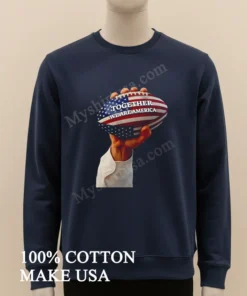 As an average American who loves comfort and meaningful gear, this tee truly stands out. The design is more than just a graphic; it’s a story those hands, the flag, the football visually strong, conveying unity without being preachy. Unlike flimsy tees that fade after a couple washes, this one feels substantial, made from soft, breathable 100% American Cotton. I pair mine with jeans for a casual look, or layered under a denim jacket on cooler evenings. To keep it sharp, I always wash inside out in cold water, tumble dry low, and skip the bleach keeps the print vibrant for years. Discussions? Check Reddit’s r/USA and Instagram’s #AmericanUnityThreads for how others are styling theirs. It’s not just a shirt; it’s an everyday statement of pride that lasts.